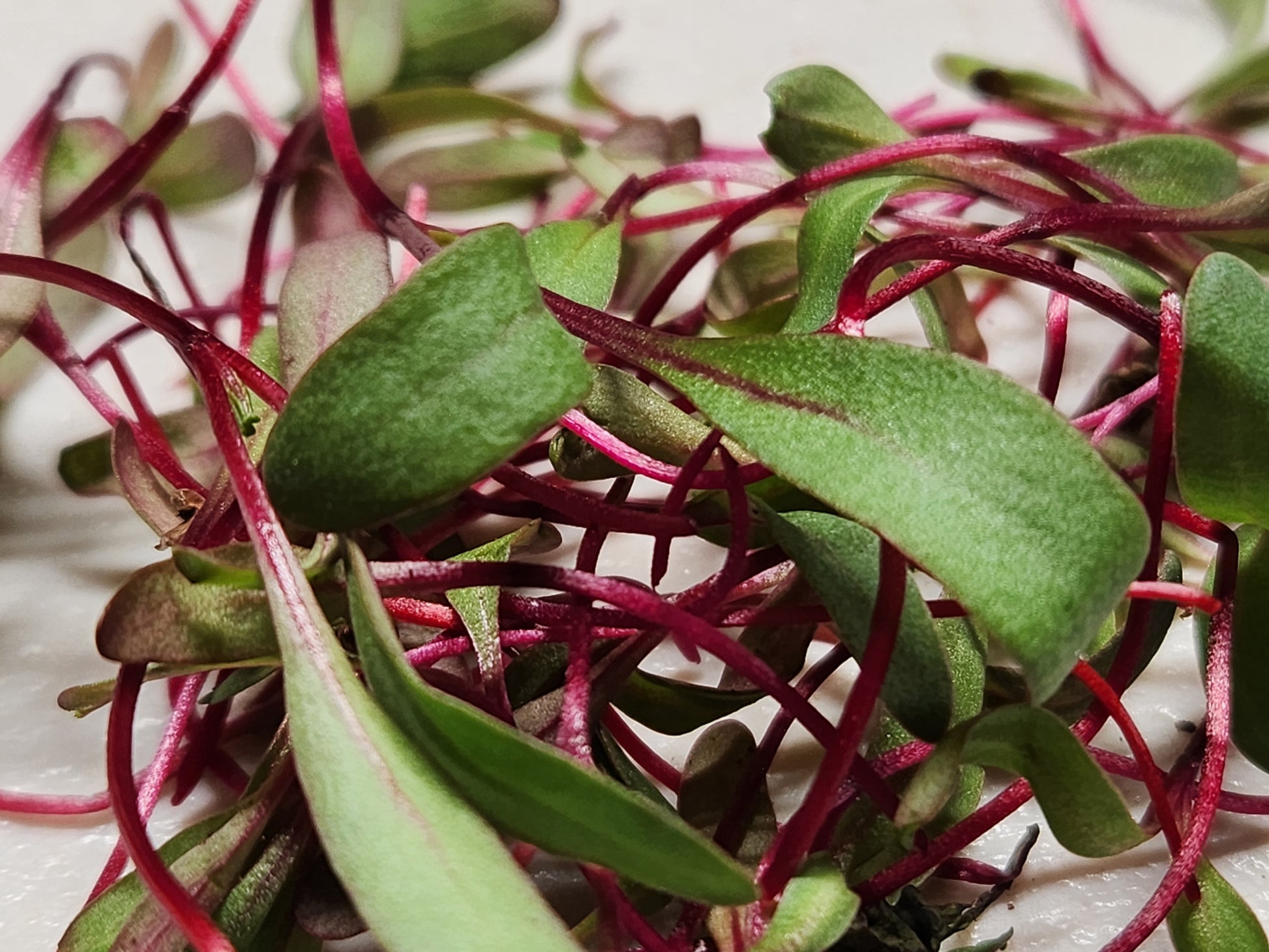 Add a vibrant pop of color and flavor to your meals with our Beet Microgreens. These tender greens offer a sweet, earthy taste and striking magenta stems, perfect for brightening up any dish. They pair beautifully with goat cheese, roasted vegetables, or as a garnish for soups and entrees.